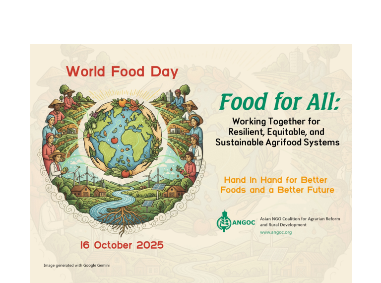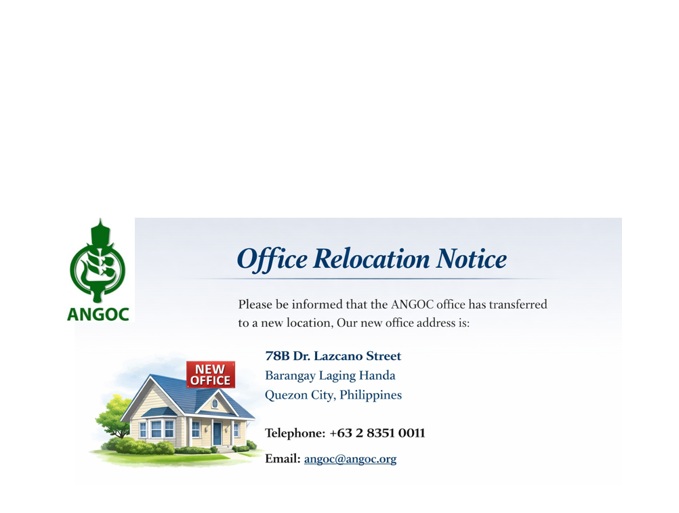 Founded in 1979, ANGOC is a regional association of national and regional networks of civil society organizations (CSOs) in Asia, actively engaged in food security, agrarian reform, sustainable agriculture, participatory governance, and rural development.